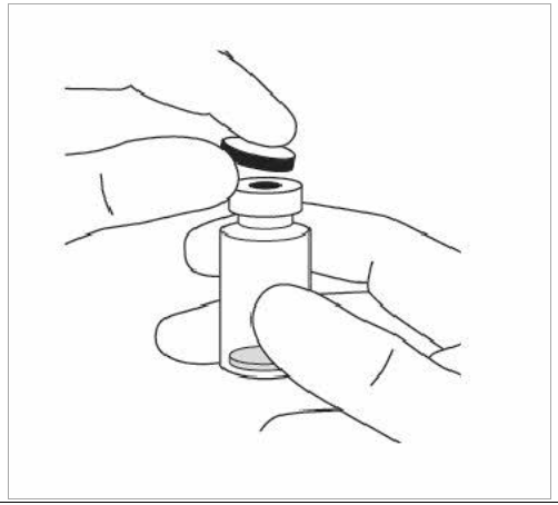 | 2. | Retirer le capuchon en plastique et désinfecter la partie extérieure du bouchon en caoutchouc du flacon. | |