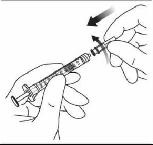 | 8. | Fixer fermement l'aiguille pour injection de30 G × 13 mm sur l'extrémité Luer Lock de la seringue par un mouvement de rotation. |