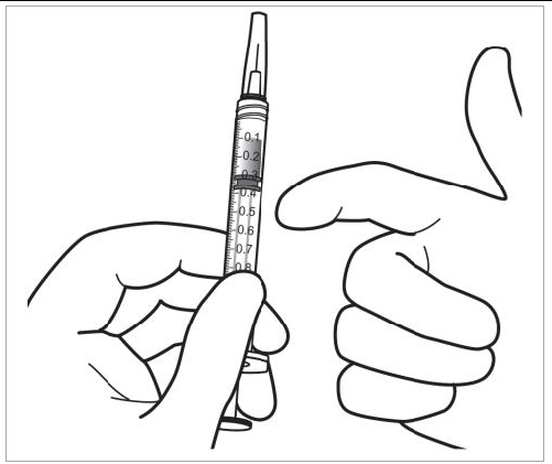 tenant la seringue avec l'aiguille dirigée vers le haut, vérifier