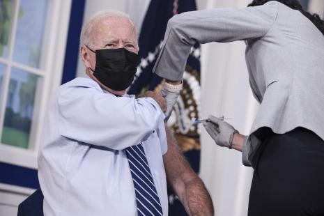 « Je sais qu'on ne dirait pas, mais j'ai plus de 65 ans… » a plaisanté Joe Biden, 78 ans. Alors que les États-Unis ont autorisé la semaine dernière l'injection d'une dose de rappel du vaccin Pfizer contre le Covid-19 pour les plus de 65 ans, ainsi que pour celles à « risque », y compris du fait d'un emploi les exposant particulièrement, le président américain a reçu lundi sa troisième dose de vaccin contre le Covid-19 en direct à la télévision. Il entend ainsi encourager les 60 millions Américains éligibles à la troisième dose à l'imiter. Mercredi, il était à Chicago « pour dire pourquoi il est si important que davantage de commerces imposent une obligation vaccinale ».